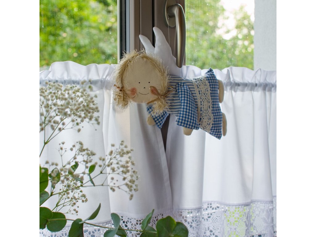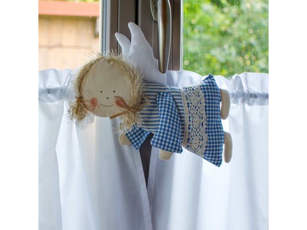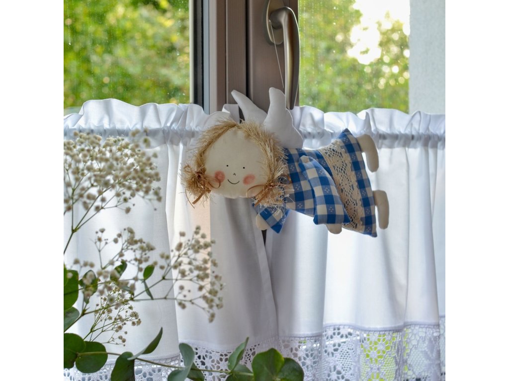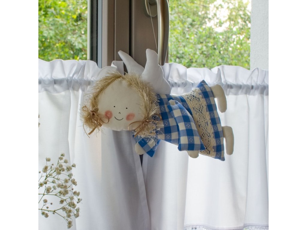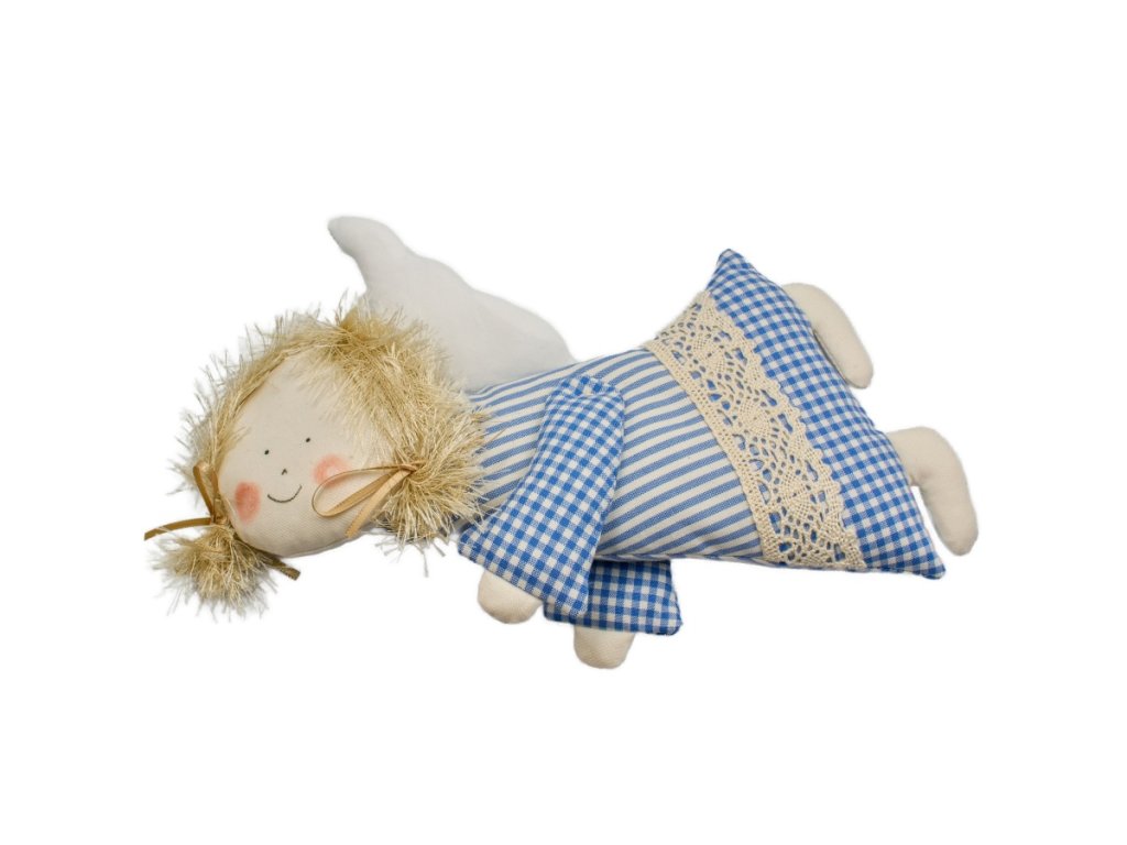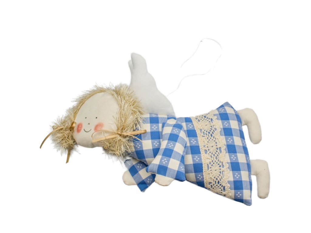 Andělka létací má šatičky z modrého kanafasu, ladí s naší kolekcí modrých textilních doplňků.