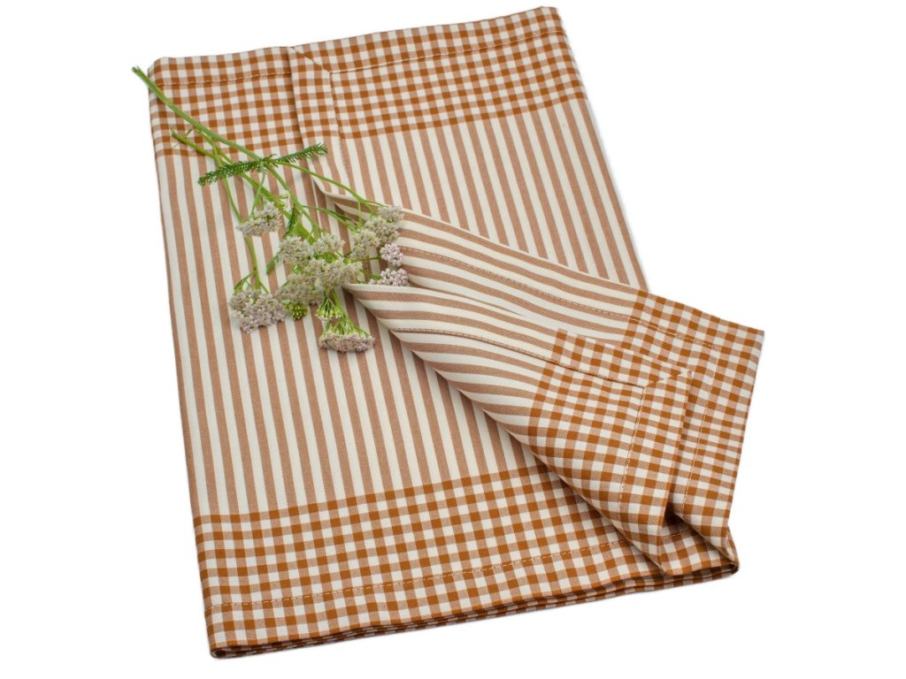 Běhoun z kanafasu můžete na chalupě doplnit prostírkami a dalšími doplňky z rezavé kolekce.