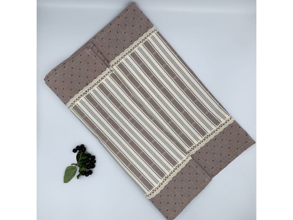 Běhoun z kanafasu pruhy zdobený režnou krajkou je vhodný pro sváteční příležitosti.
