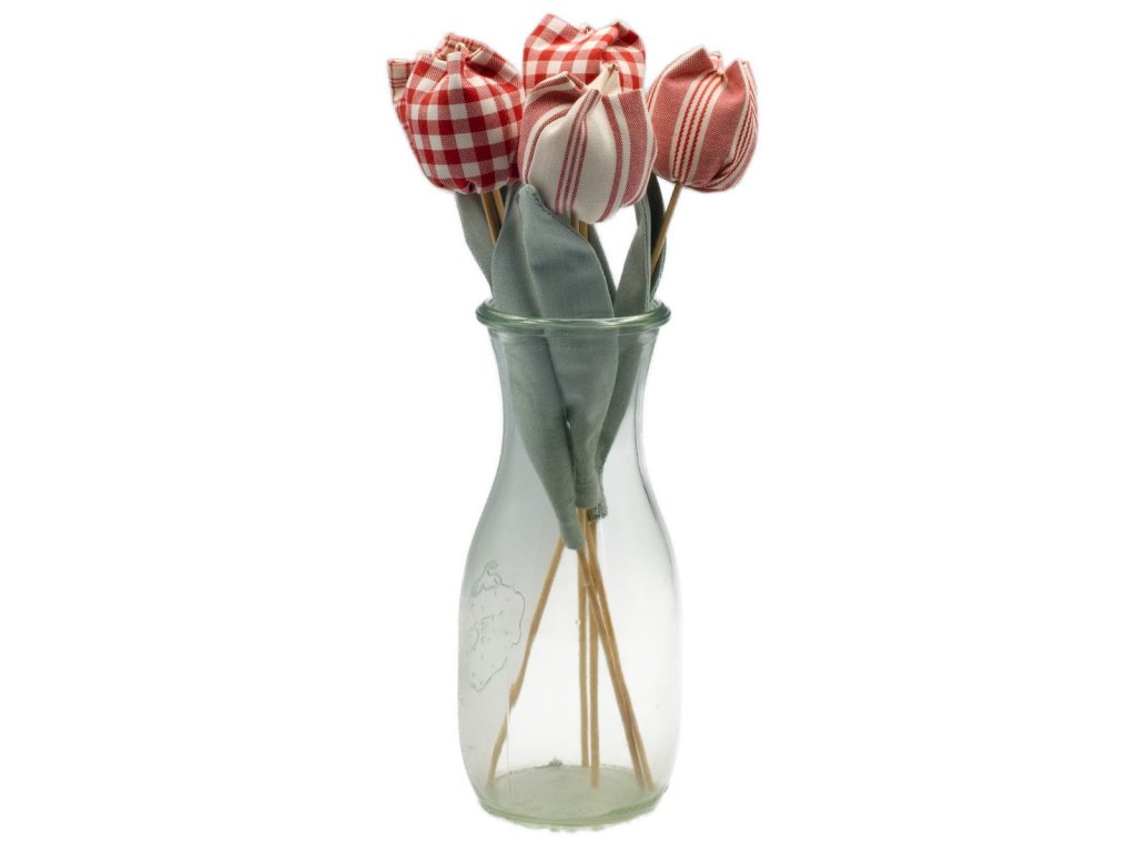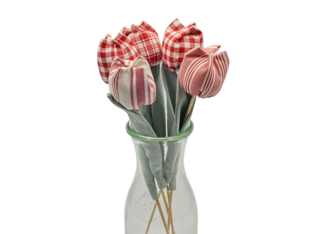 Celoroční dekorace - tulipánky ušité z kanafasu.