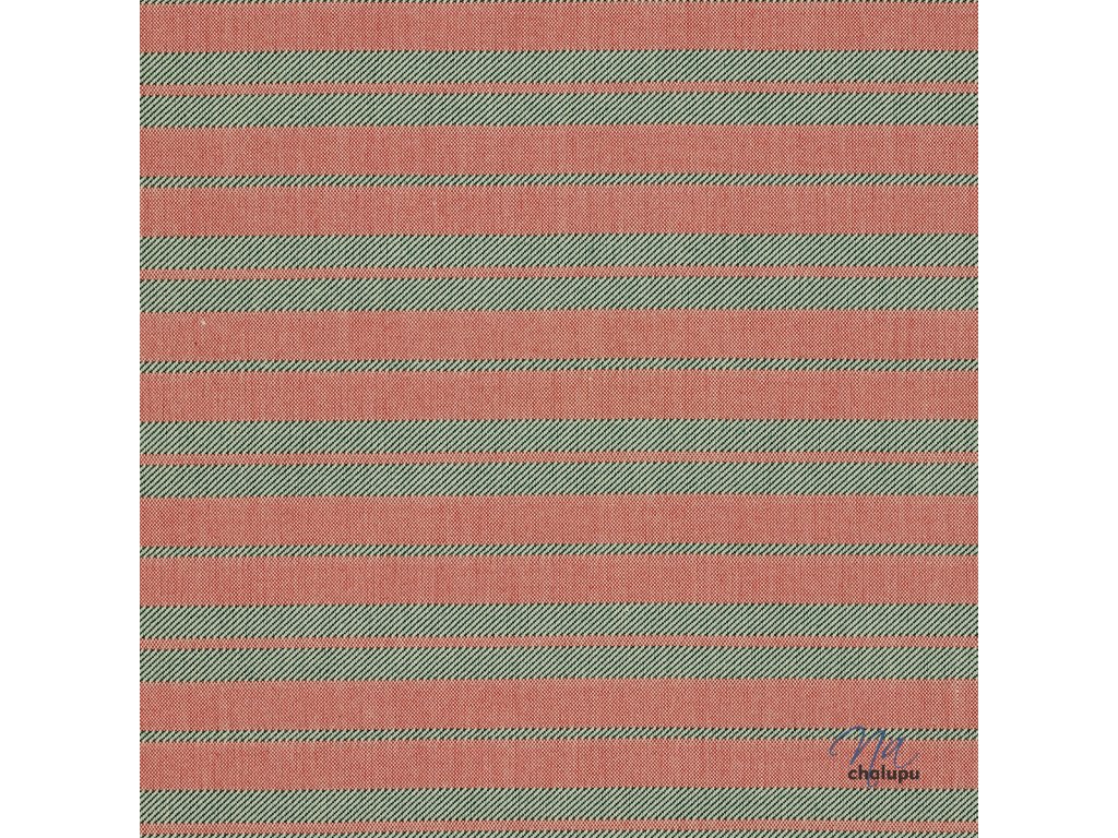 Červeno-zelené pruhy kombinují plátnovou a keprovou vazbu. Zajímavé jsou zelené keprové pruhy na červeném plátně. Vznikají zelené copánky a tvoří s červenou originální vzor.