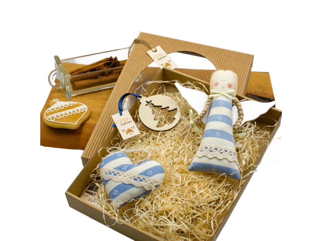 Připravili jsme pro Vás dárkovou sadu praktických doplňků z modrého kanafasu. Sada je zabalena v dárkové papírové krabici.