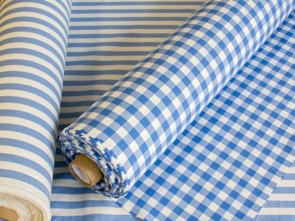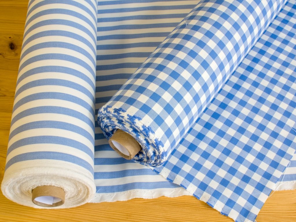 Pruhy na látce máme jak v osnově - podélné (délka ptruhu = délka látky), tak i utkané v útku - příčné (délka ptruhu = šířka látky).