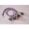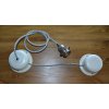 Objímka E27 kovová s kroužkem + průchodka kabelu se svorníkem + textilní kabel 1m + závěs + svorkovnice