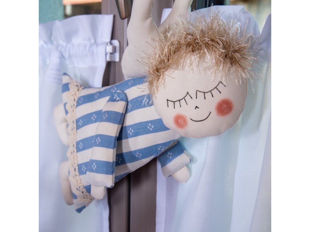 Nemělo by se to s dekoracemi přehánět, ale když jsou ty šité panenky sladěné s dalším kanafasem na polštářcích, závěsech, tak to vypadá pěkně.