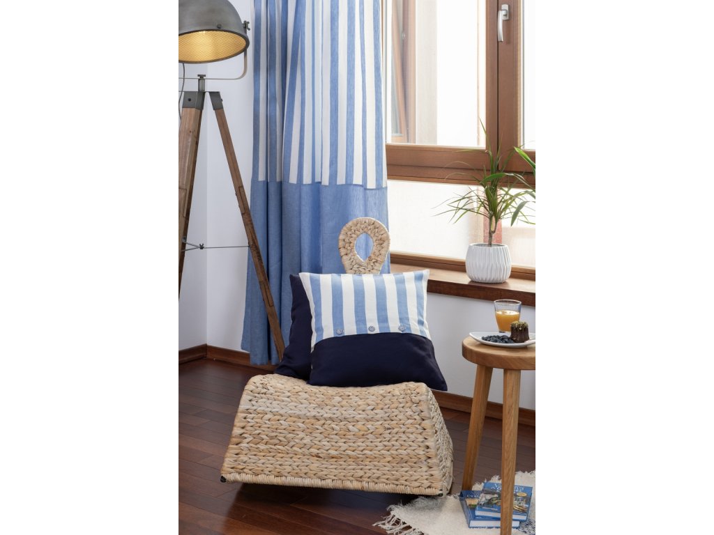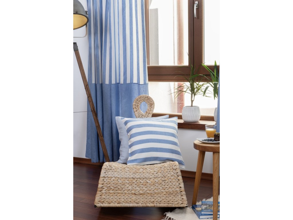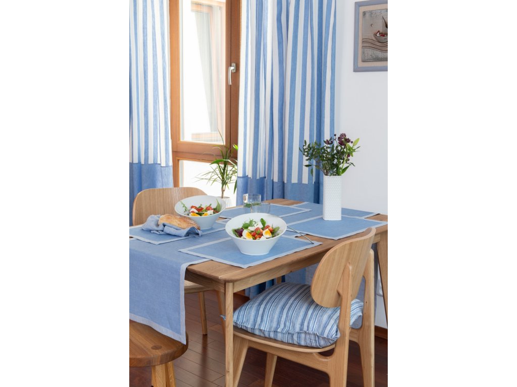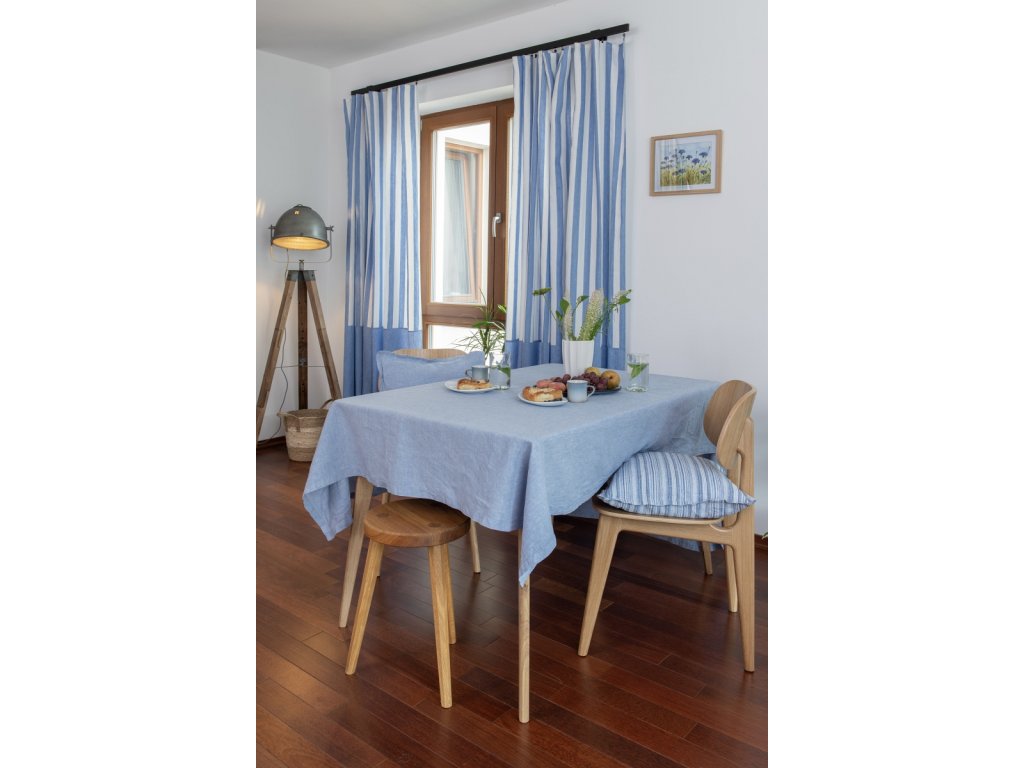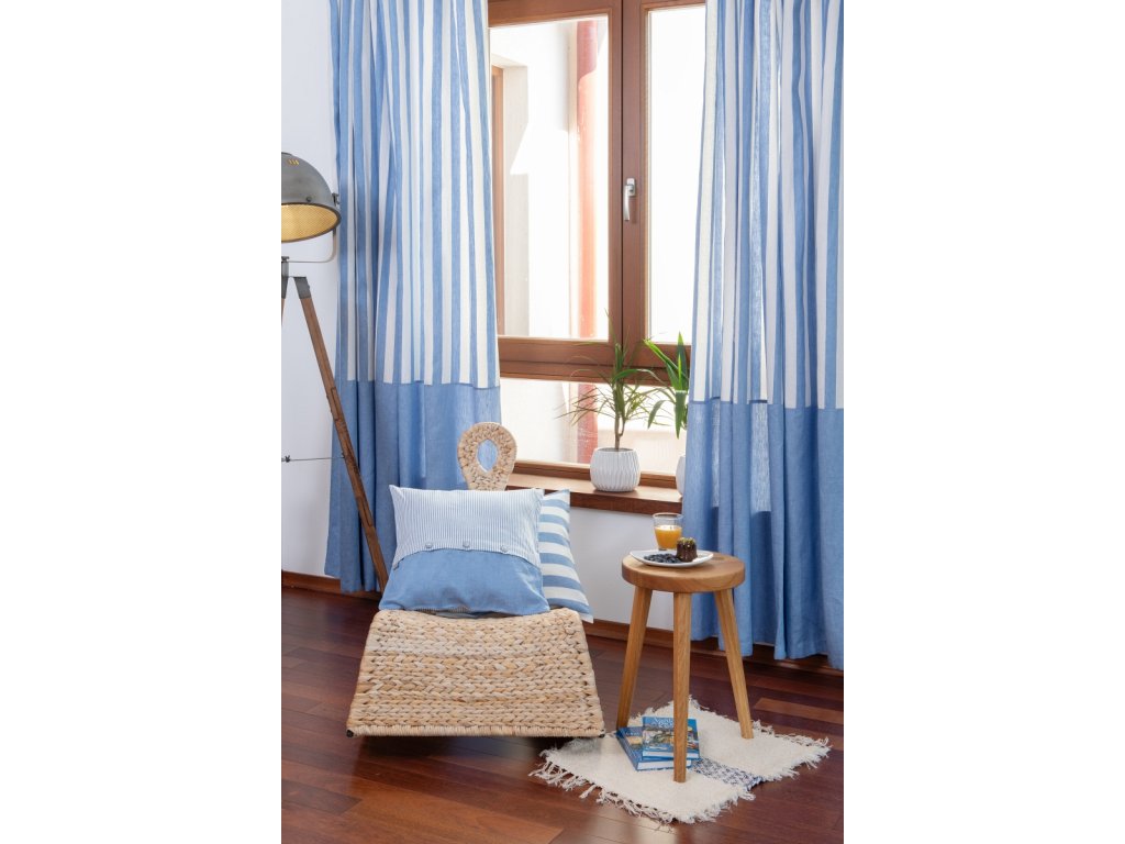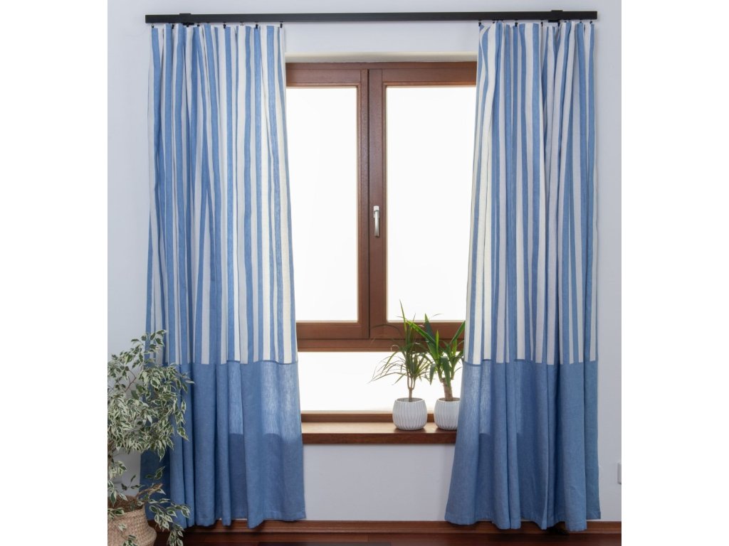 Světle modrá barva pruhů připomíná letní moře a bílé domky v Řecku. Závěsy kw3 jsou ušity z kvalitního lnu v keprové vazbě, která látce dodává jemnou strukturu a přirozenou pevnost.