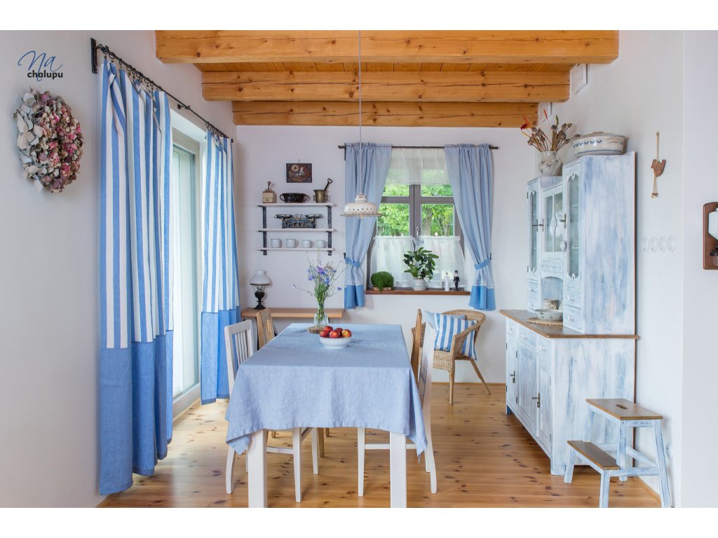 Širší pruhy (4 cm) působí vzdušně a nadčasově. V kombinaci s jednobarevnou modrou kw38 látkou vzniká dekor, který krásně oživí moderní interiér, ale stejně dobře zapadne i do chalupářského stylu. Vše záleží na tom, s jakými doplňky je sladíte – v moderním bytě budou působit svěže a minimalisticky, na chalupě zase navodí atmosféru venkovské pohody.