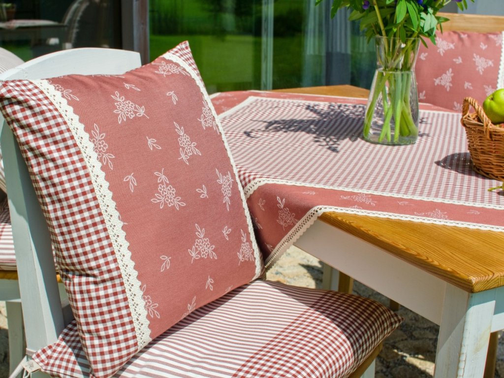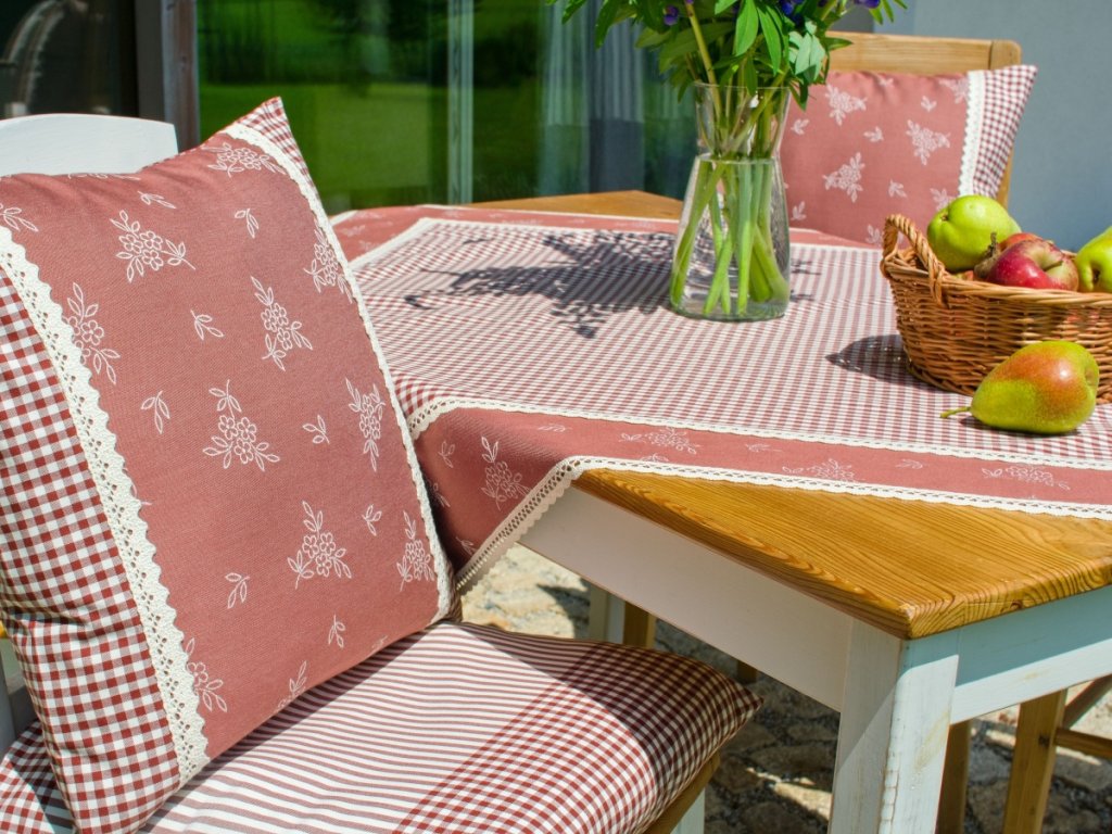 Sváteční atmosféru si vykouzlíte s textilními doplňky zdobenými krajkou. Naprony z kostkovaného kanafasu a žakáru jsou ideální pro sváteční příležitosti.