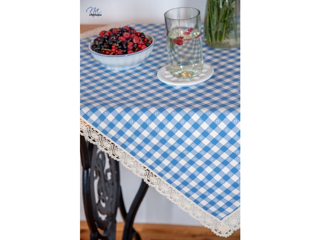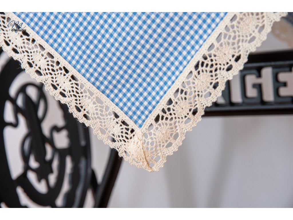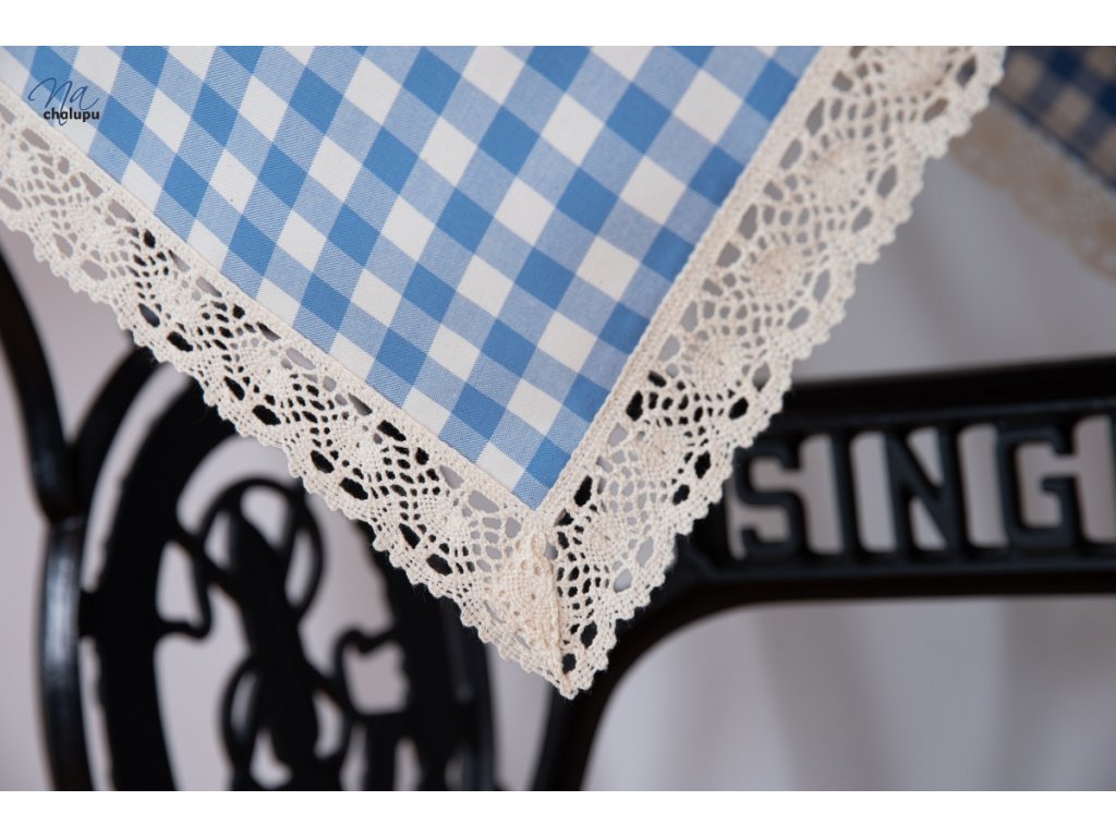 Výrazná krajka sluší pomněnkově modrým kostkám