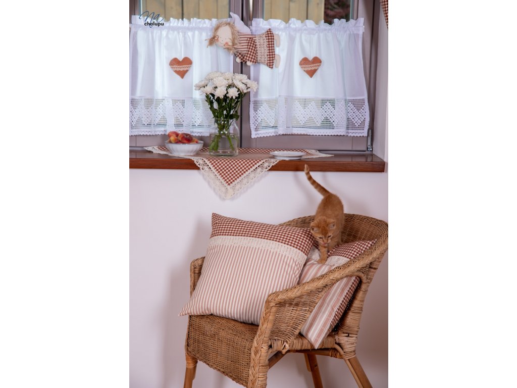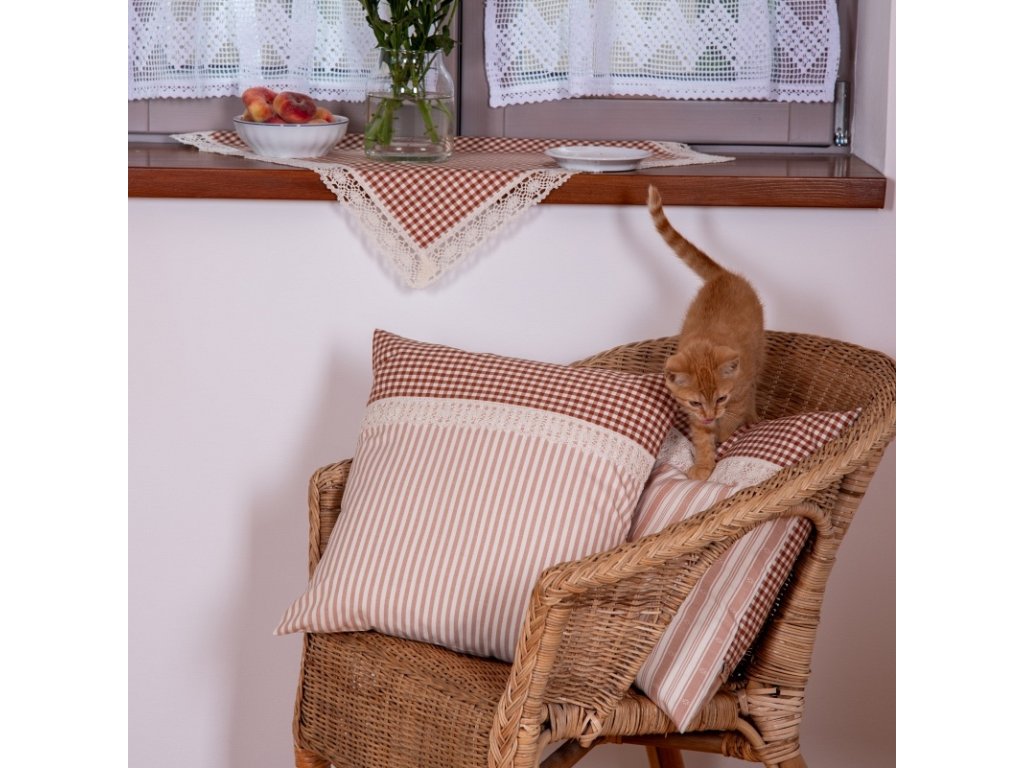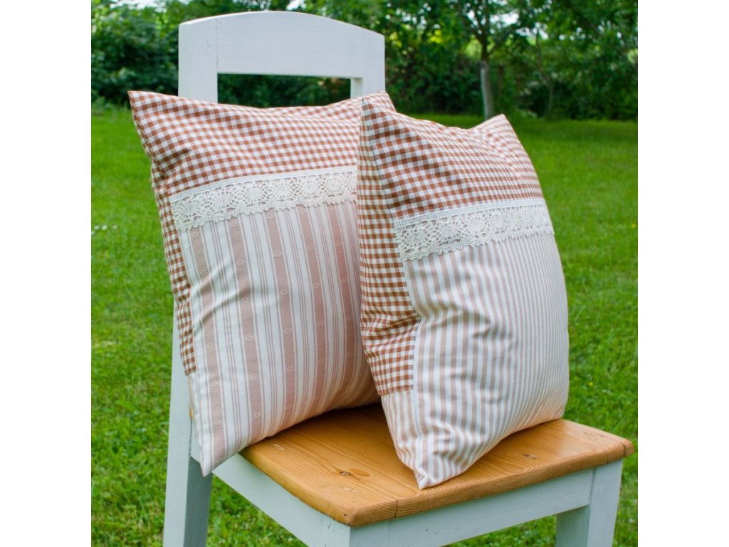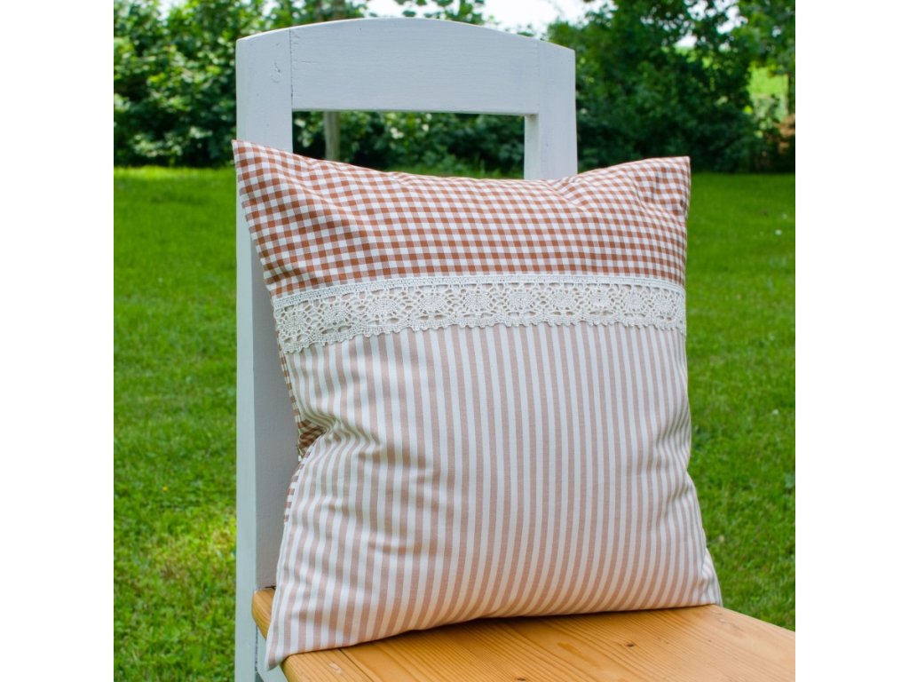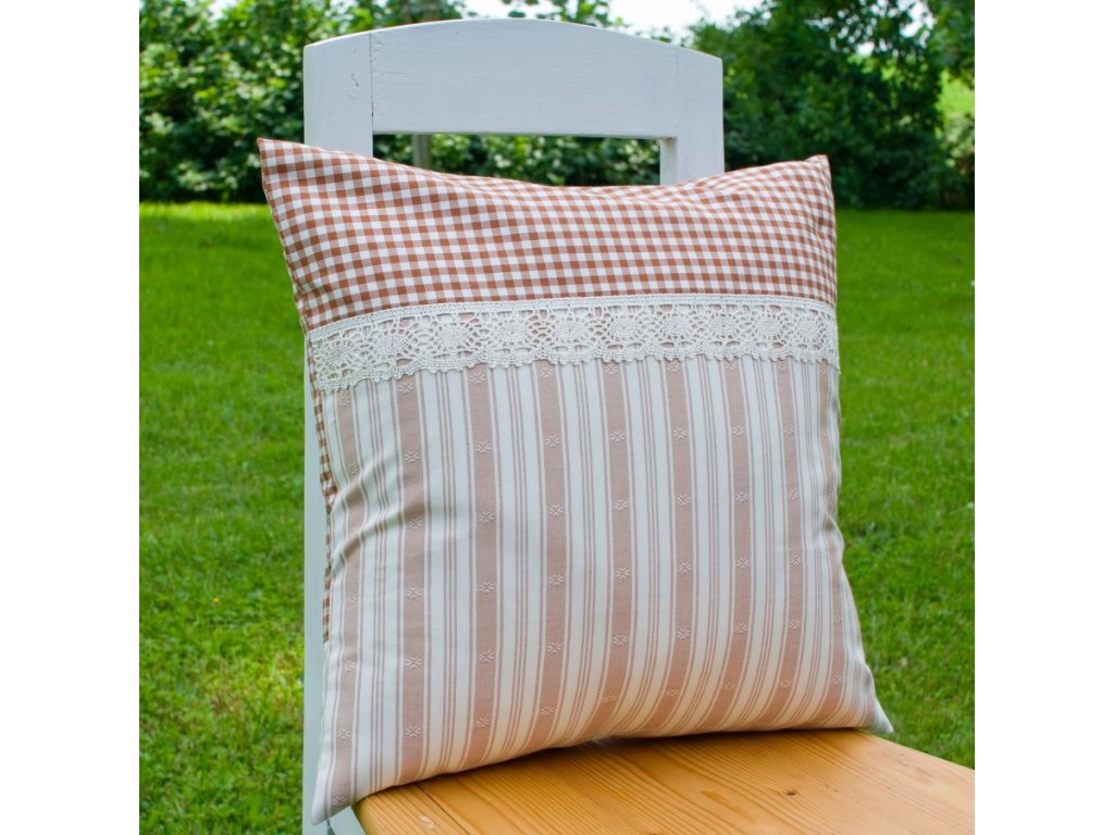 Polštářek 40x40cm z rezavého kanafasu kostky a pruhy