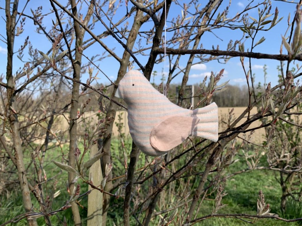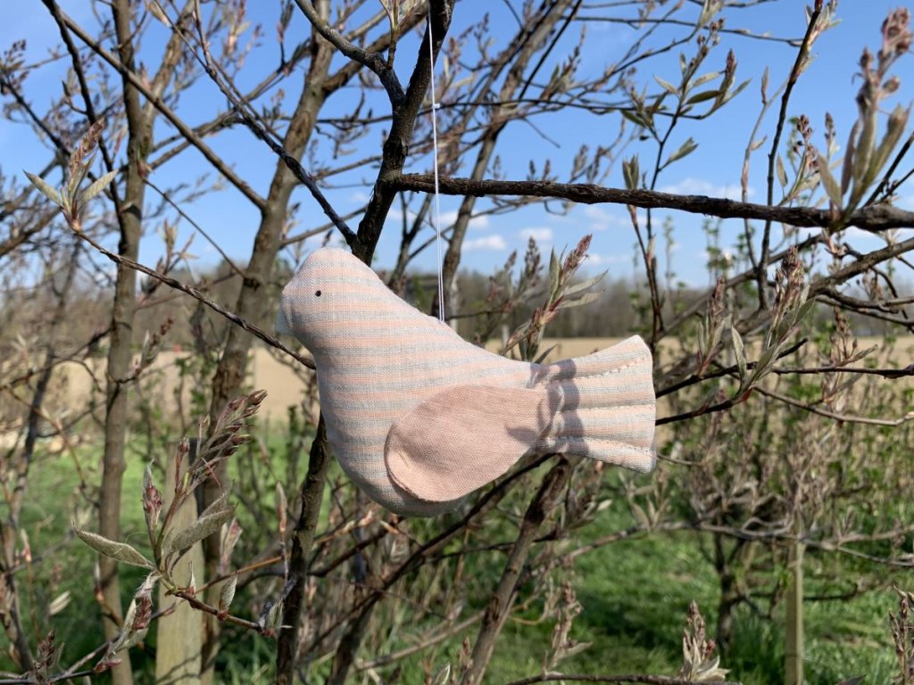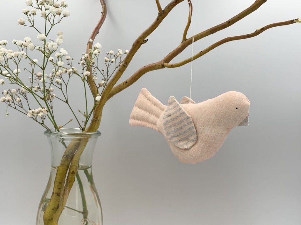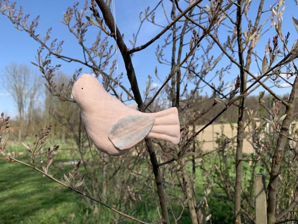 Ptáčci lnění Peach Nougat - šitá dekorace