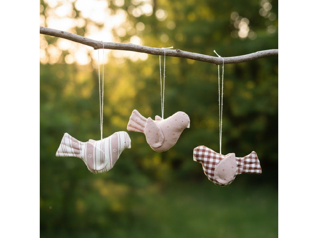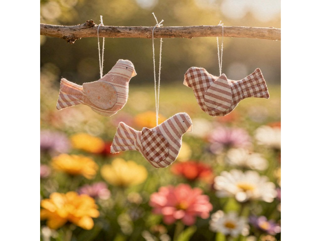 Tato dekorace je ušitá z kanafasu v dezénech a barvách našich textilních kolekcí. Ptáčky s prošitým ocáskem máme ve variantě bez křídel a s křídly.