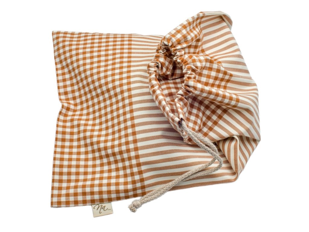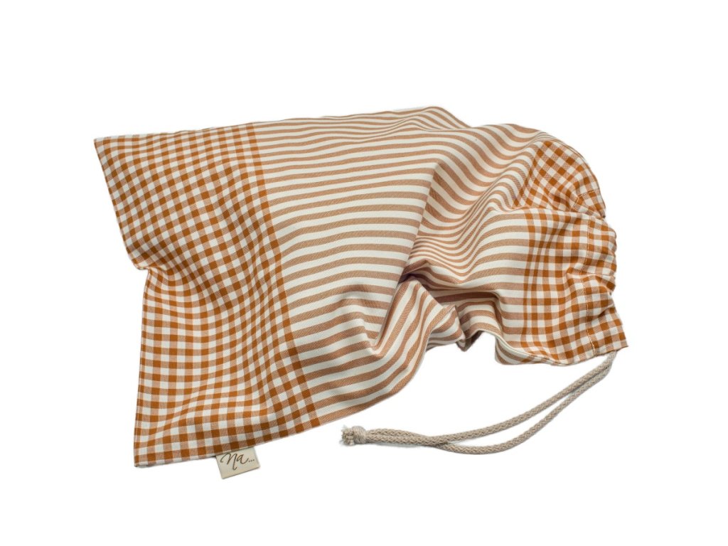 Pytlík na pečivo rezavý kanafas kostky a pruhy 5mm