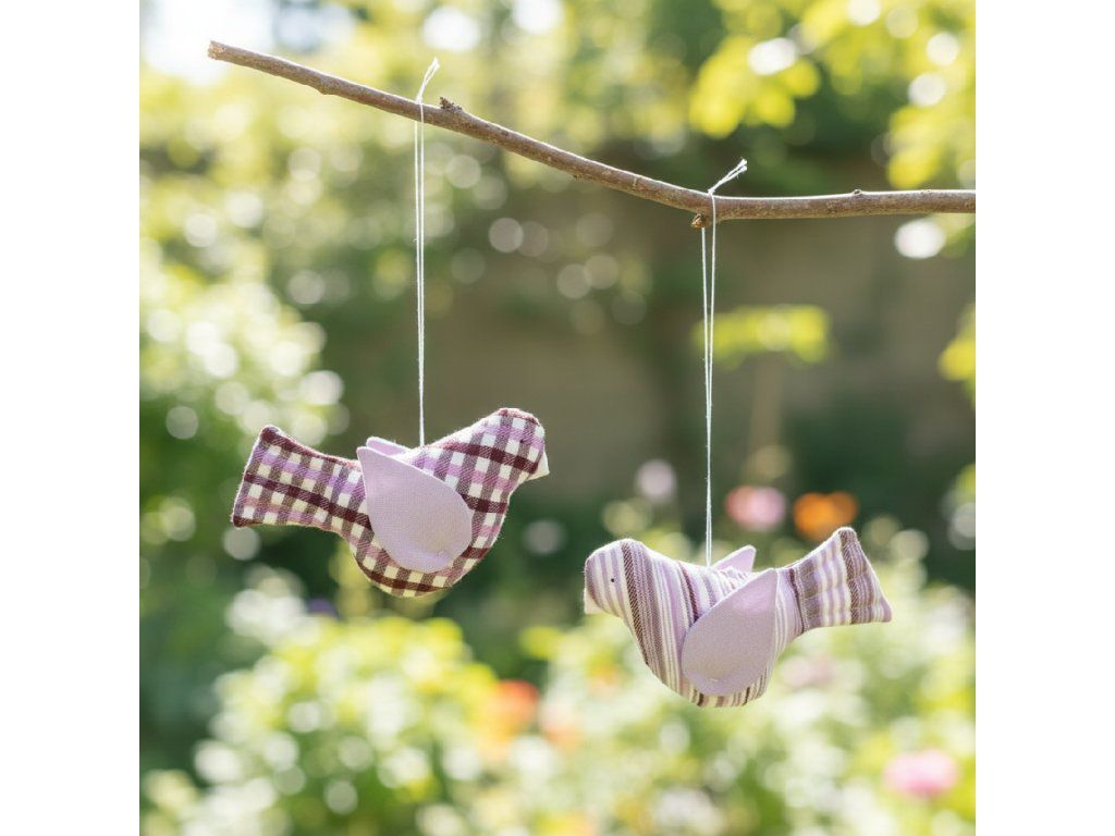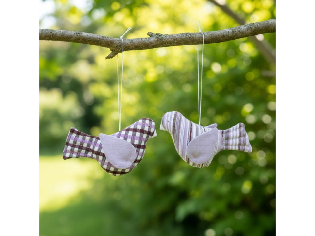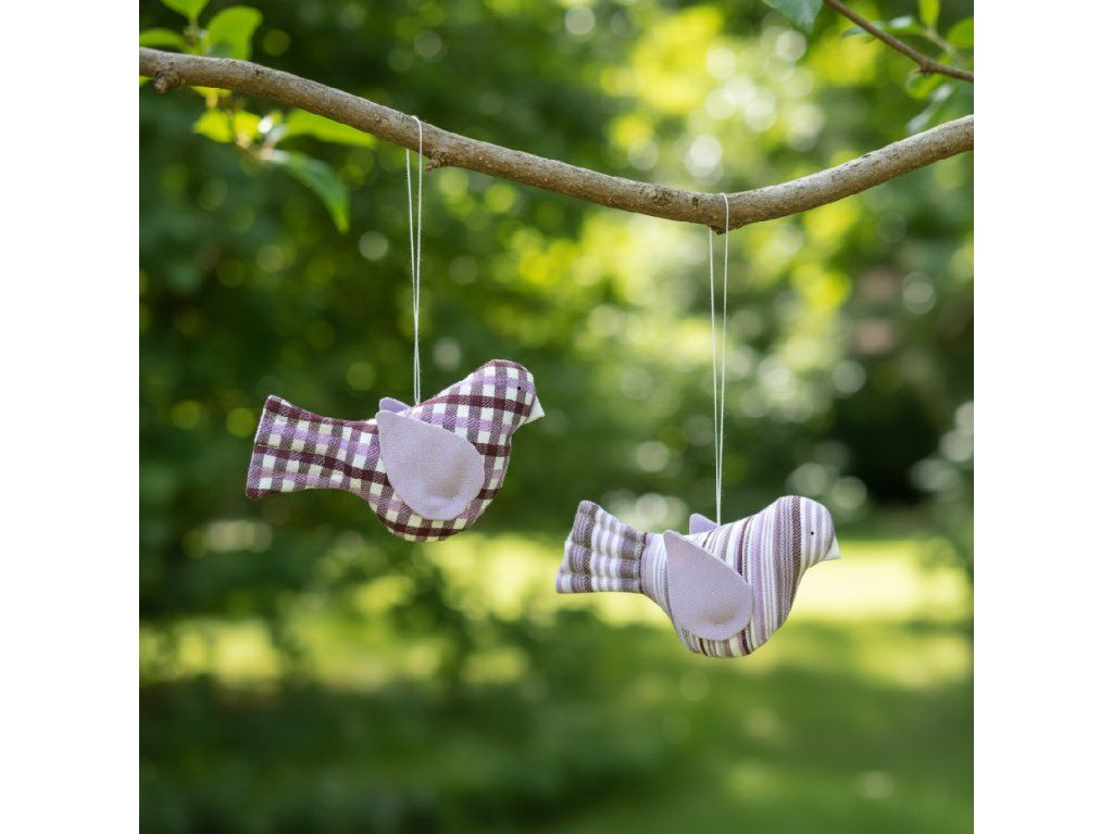 Tato dekorace je ušitá z kanafasu v dezénech a barvách našich textilních kolekcí. Ptáčky s prošitým ocáskem máme ve variantě s křídly.
