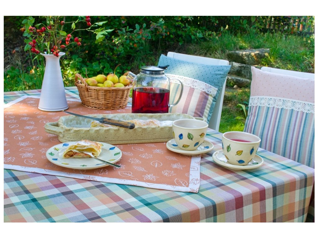 Středové ubrusy z žakáru rozzáří každý stůl. Ladí s dalšími doplňky z podzimní kolekce. Proč nemít kytičky na ubruse, polštářcích i na závěsech.
