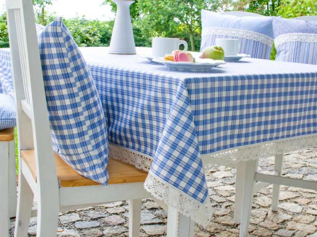 Tradiční a nadčasový ubrus, takový sluší kuchyňskému stolu nejen na chalupě. Krajkové lemování oceníte zejména pro slavnostní příležitosti, nebo prostě si můžete udělat radost kdykoliv.