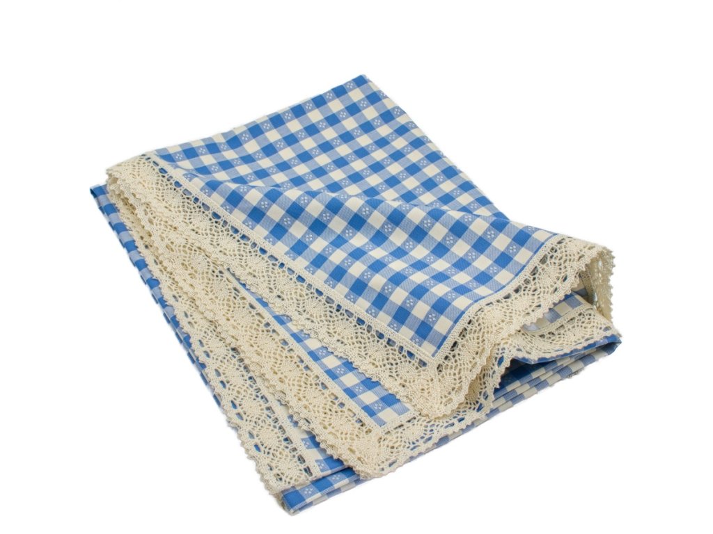 Tradiční a nadčasový ubrus, takový sluší kuchyňskému stolu nejen na chalupě. Krajkové lemování oceníte zejména pro slavnostní příležitosti, nebo prostě si můžete udělat radost kdykoliv.