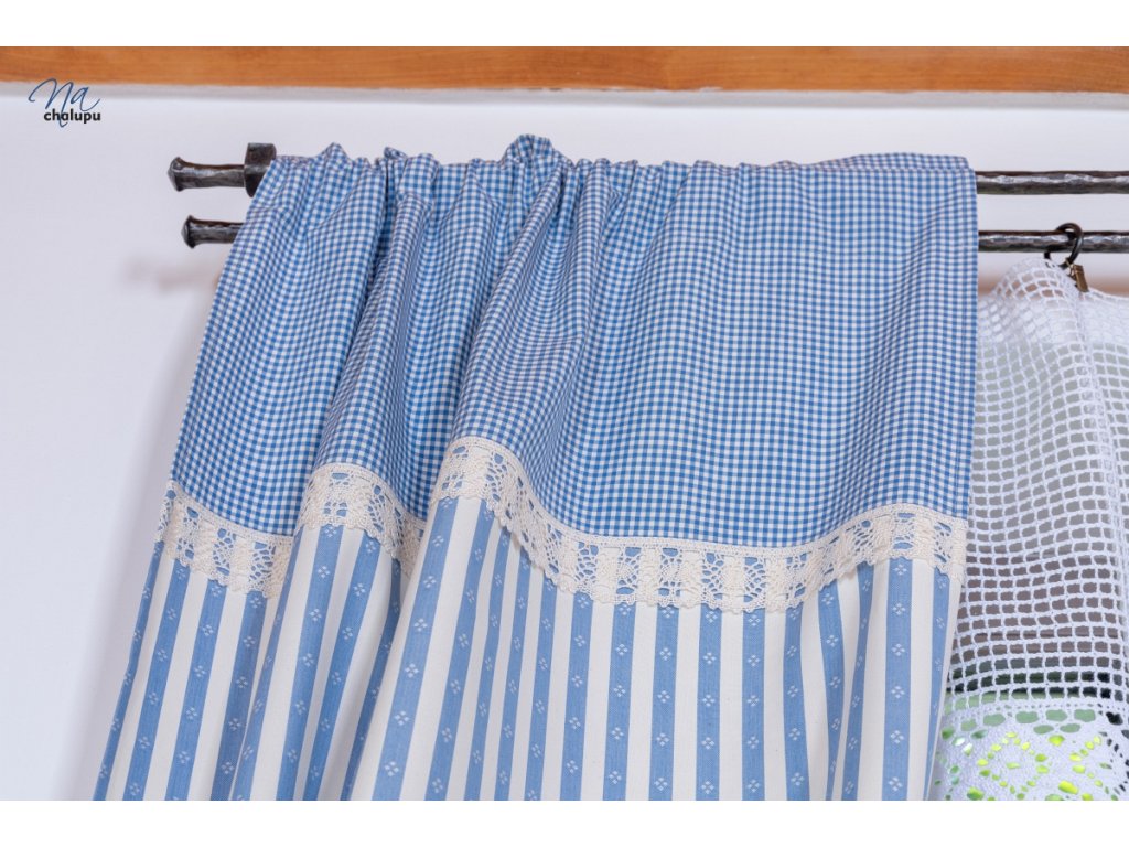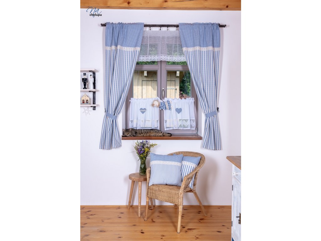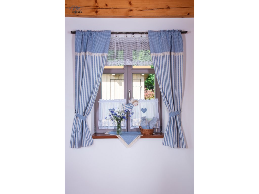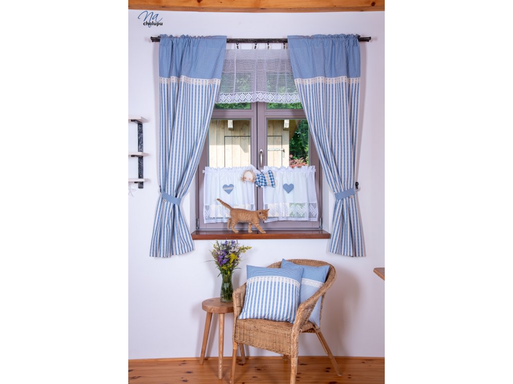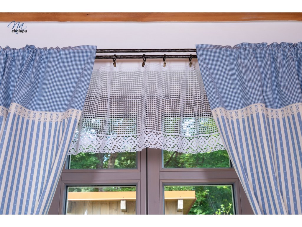 Sada závěsů z kanafasu s režnou krajkou na jedno okno.