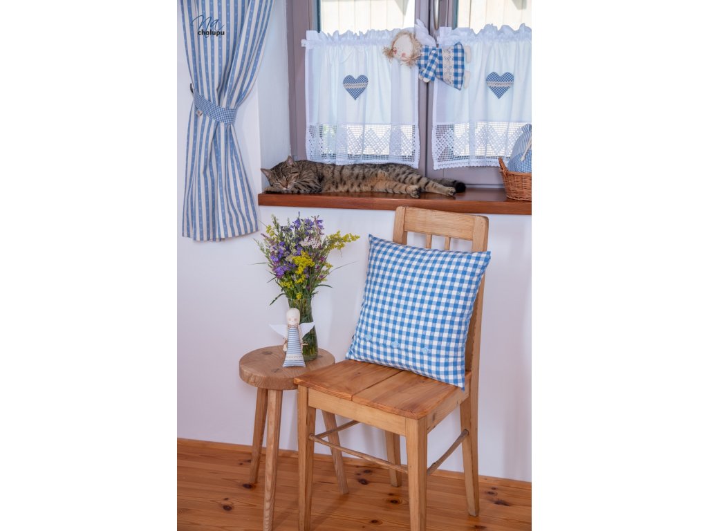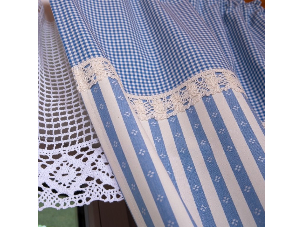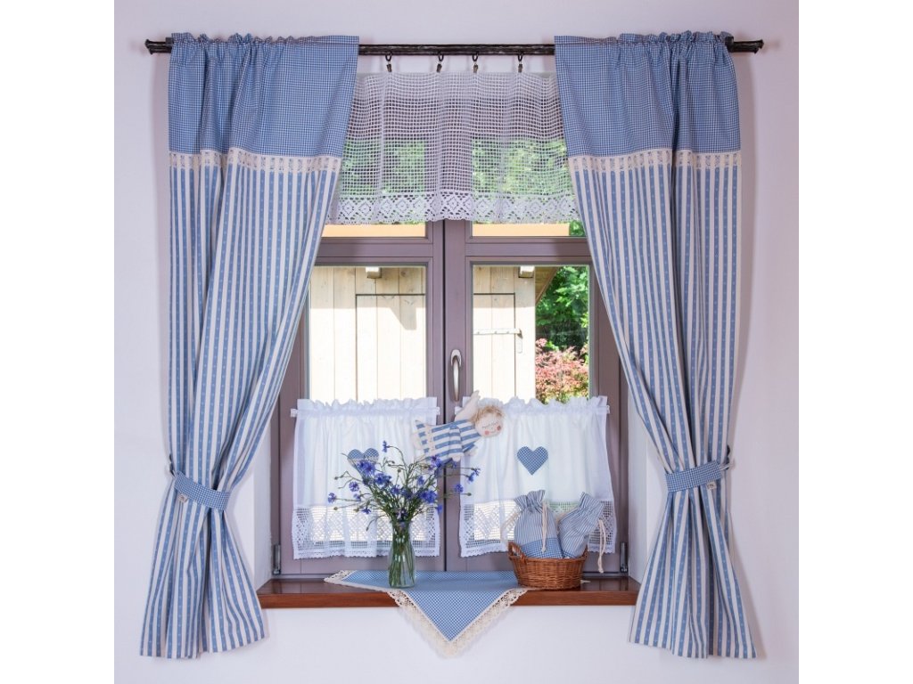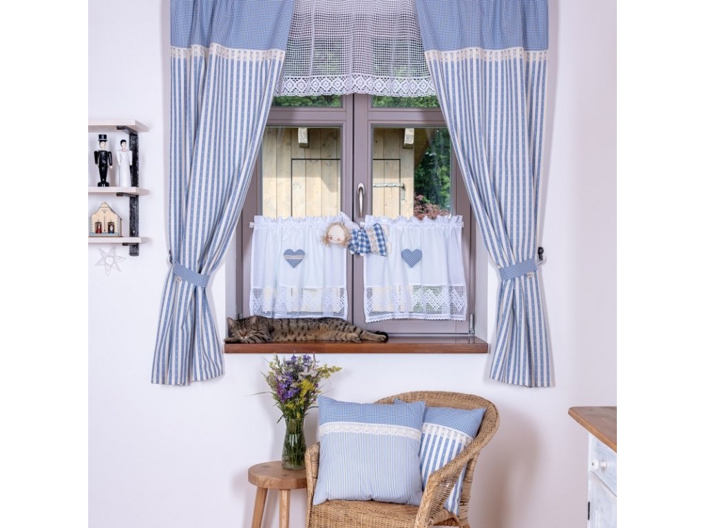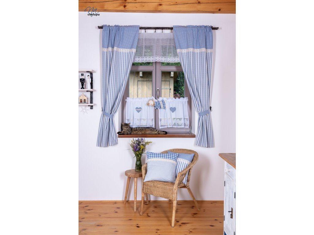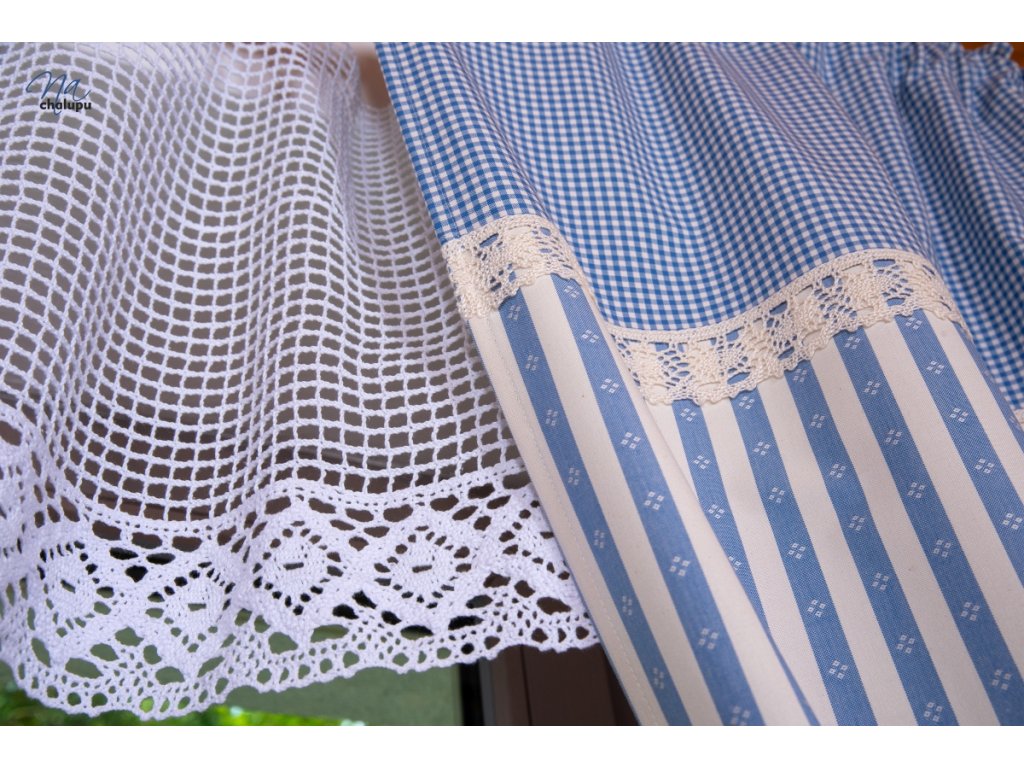 Sada závěsů z kanafasu s režnou krajkou na jedno okno.