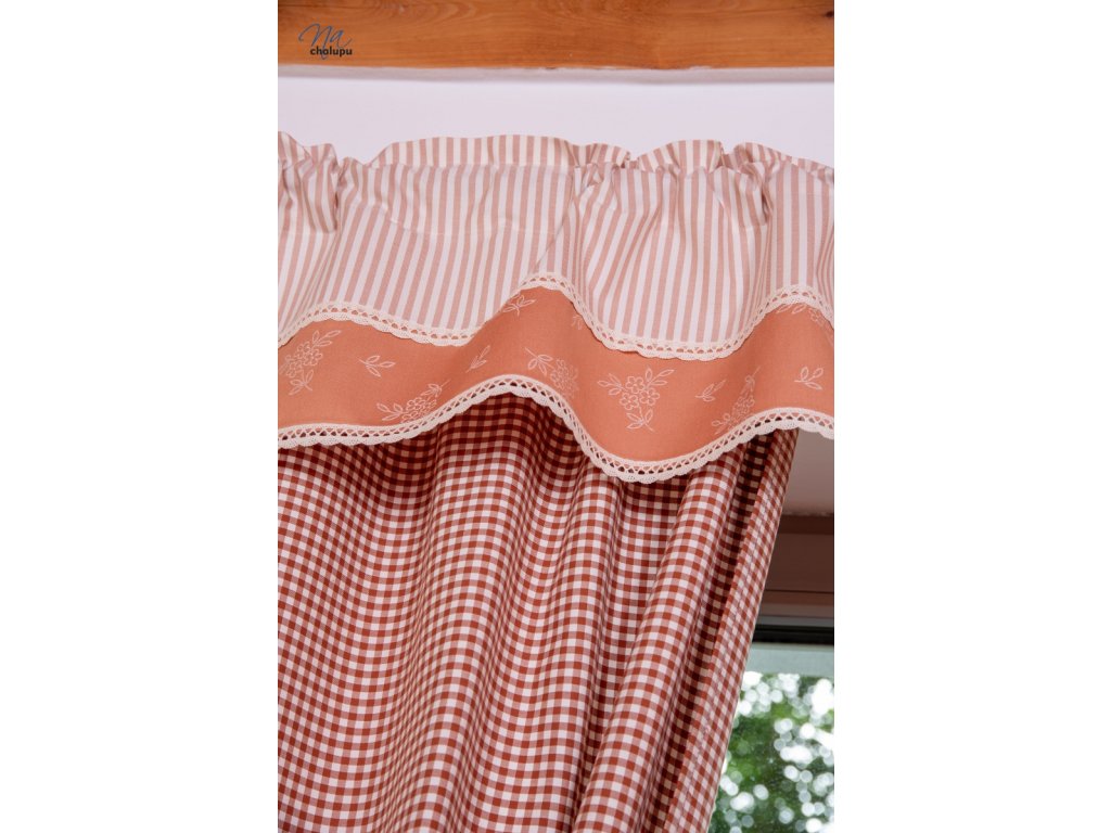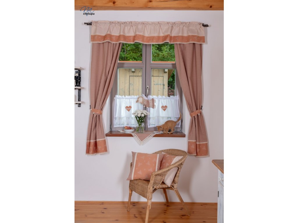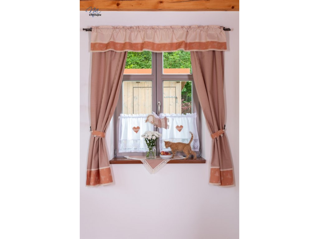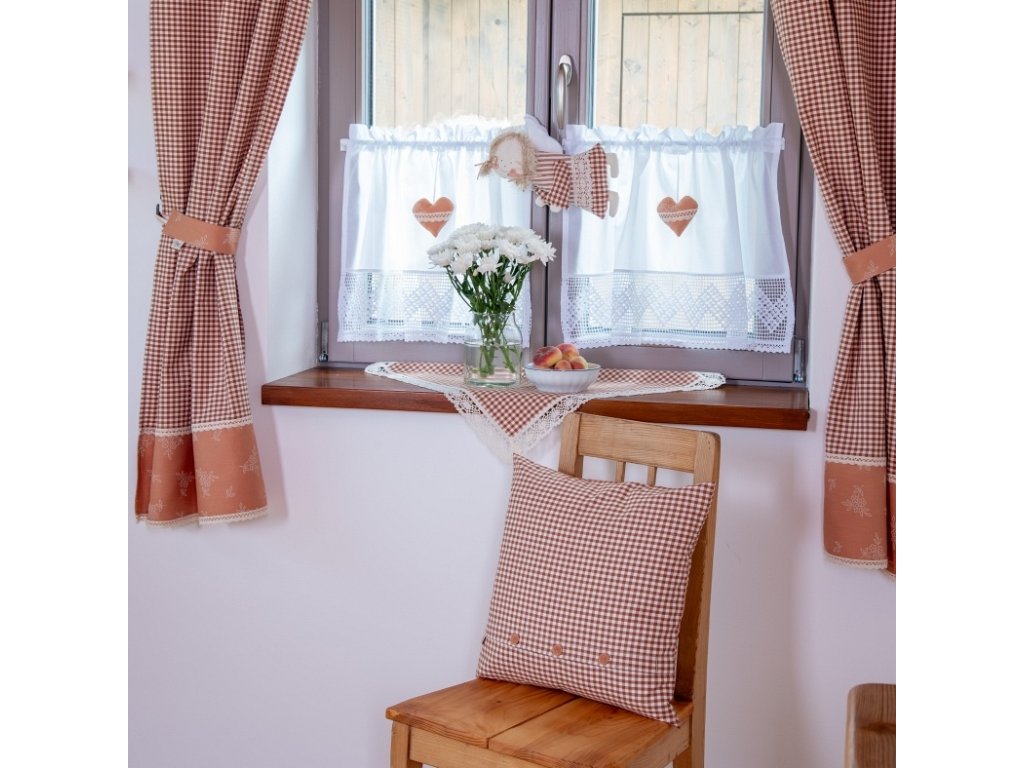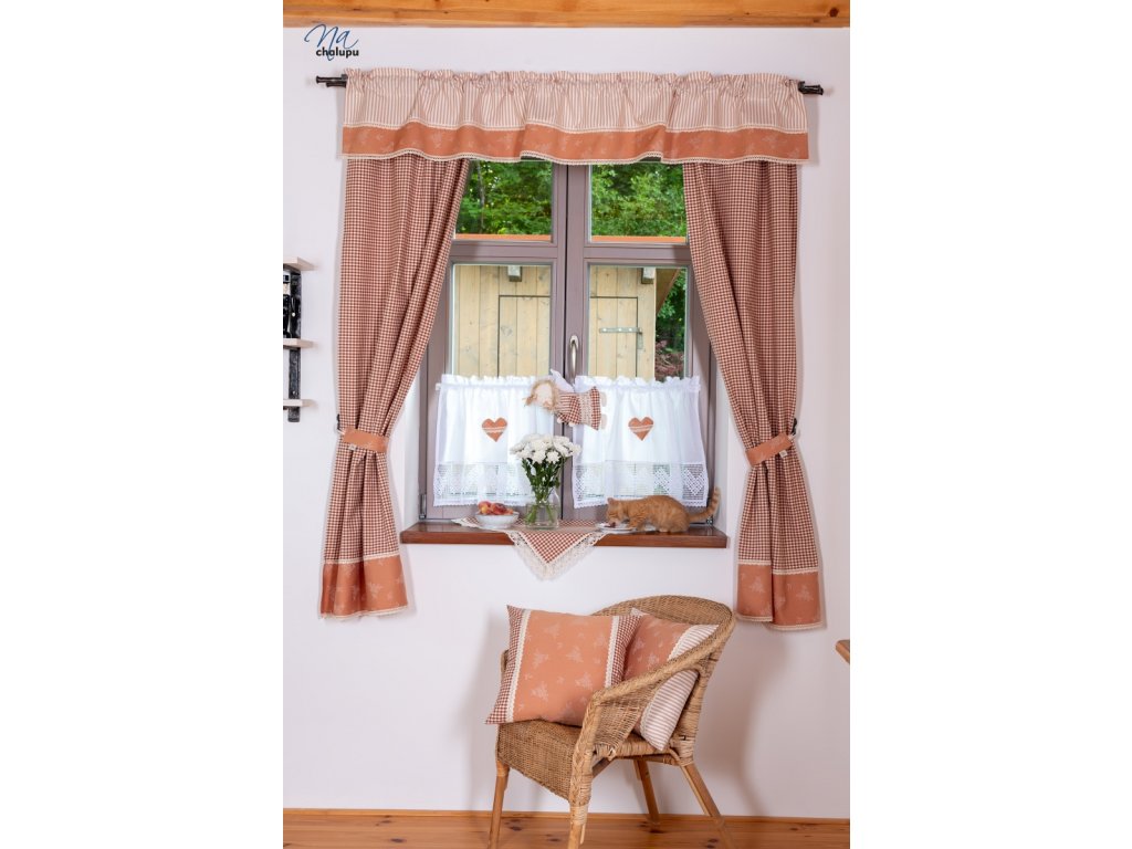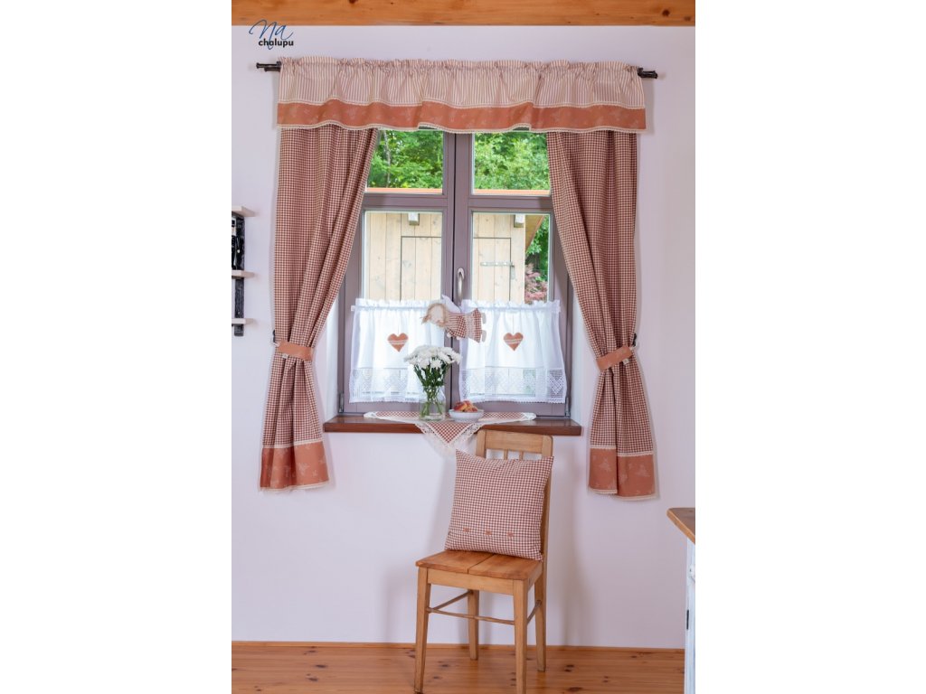 Sada závěsů z kanafasu a žakáru s režnou krajkou na jedno okno.