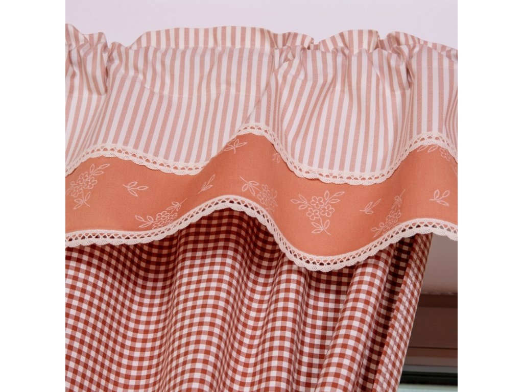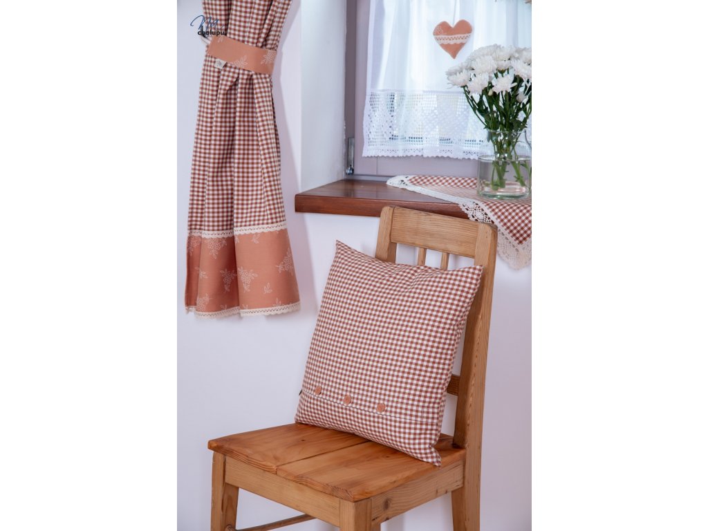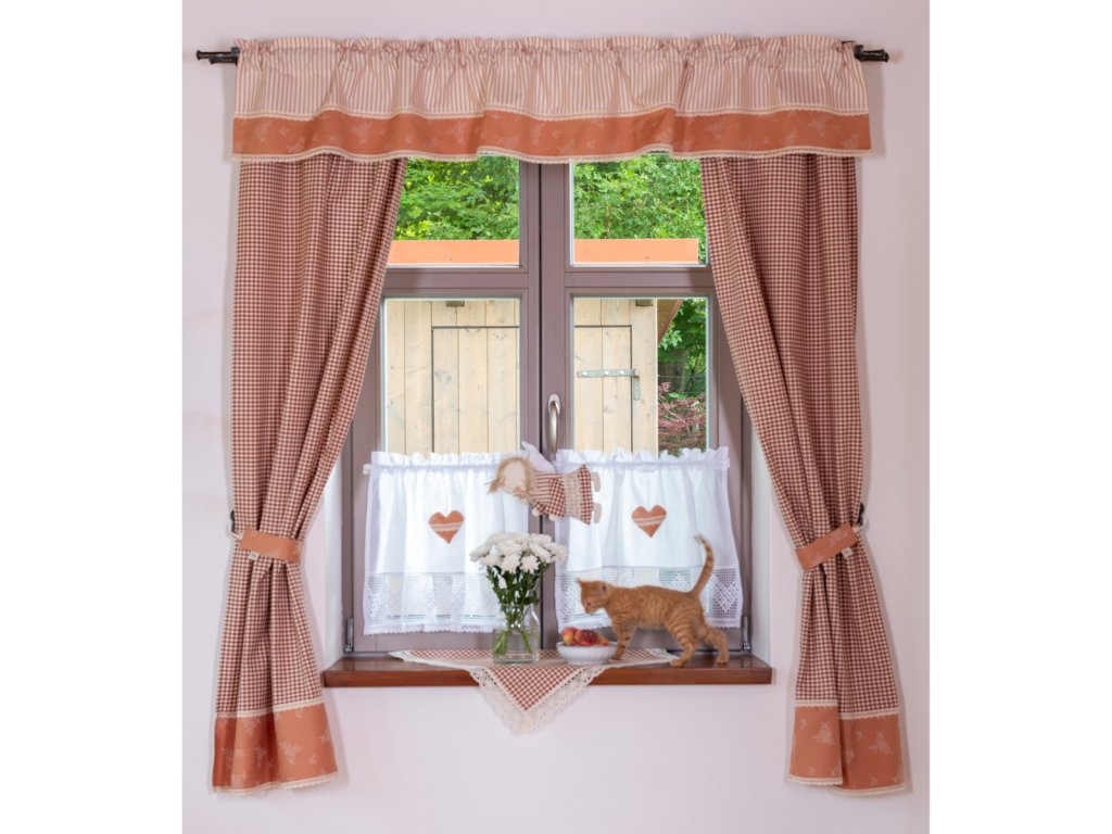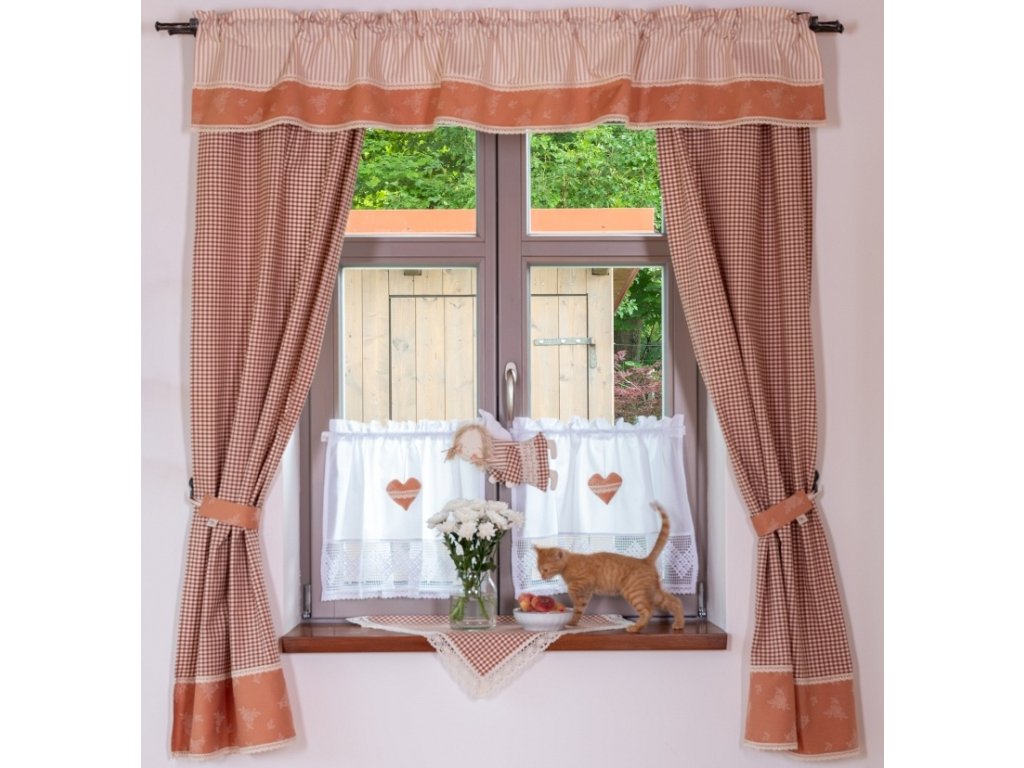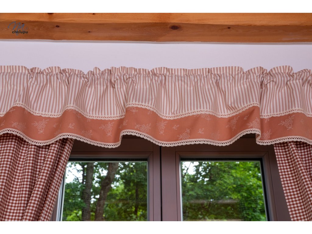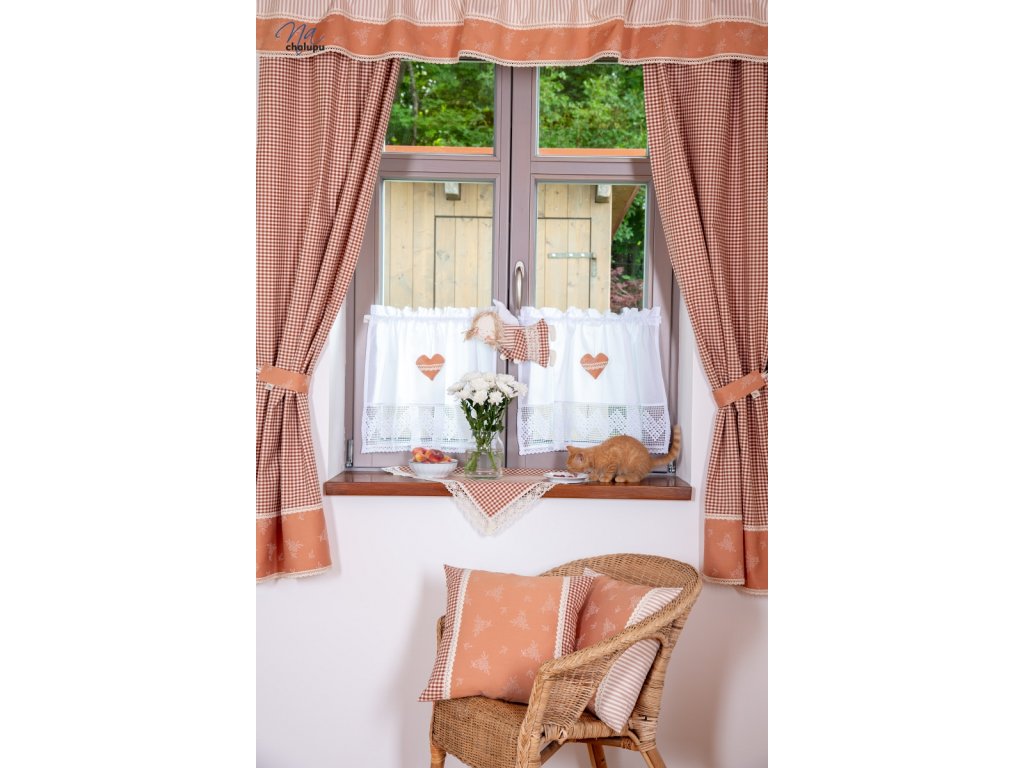 Sada závěsů z kanafasu a žakáru s režnou krajkou na jedno okno.