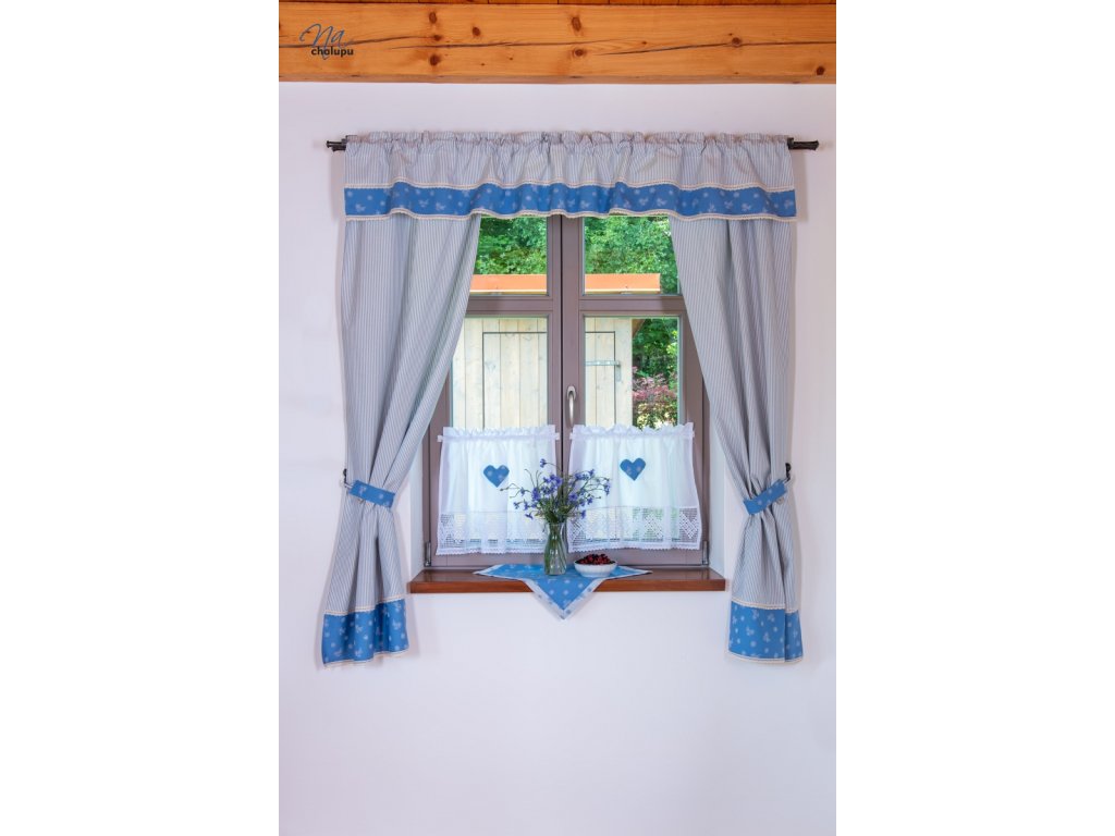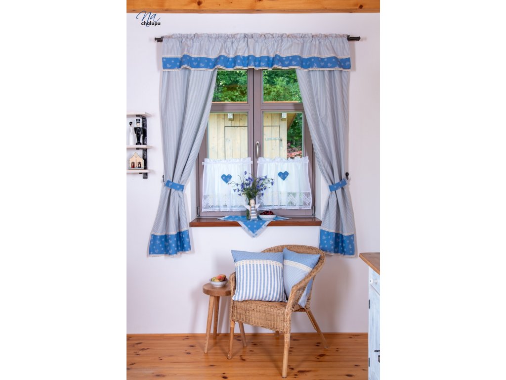 na chalupu modre zavesy kanafas karo pruhy 005 Kód: ZAVK02KOMBKAPR/01